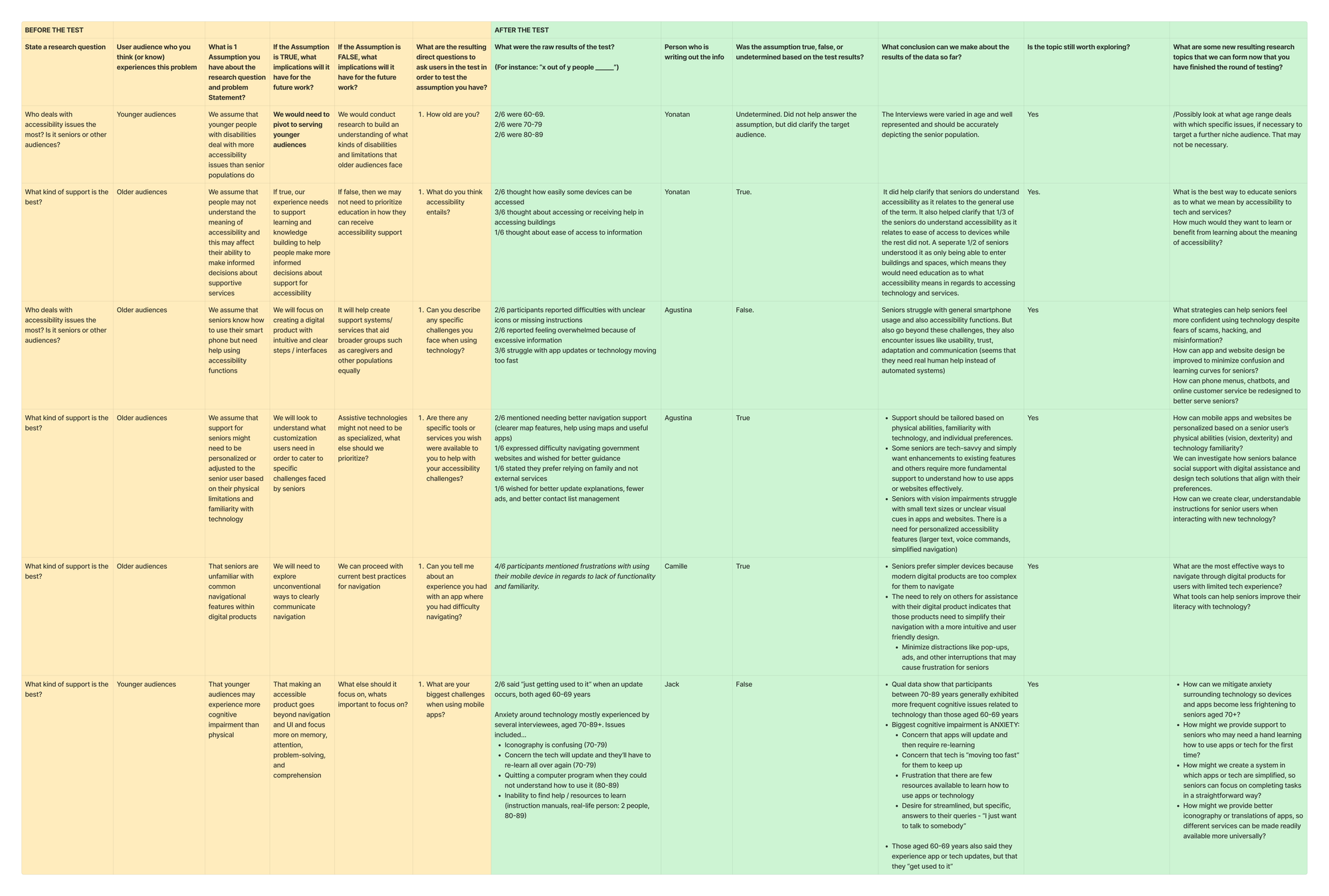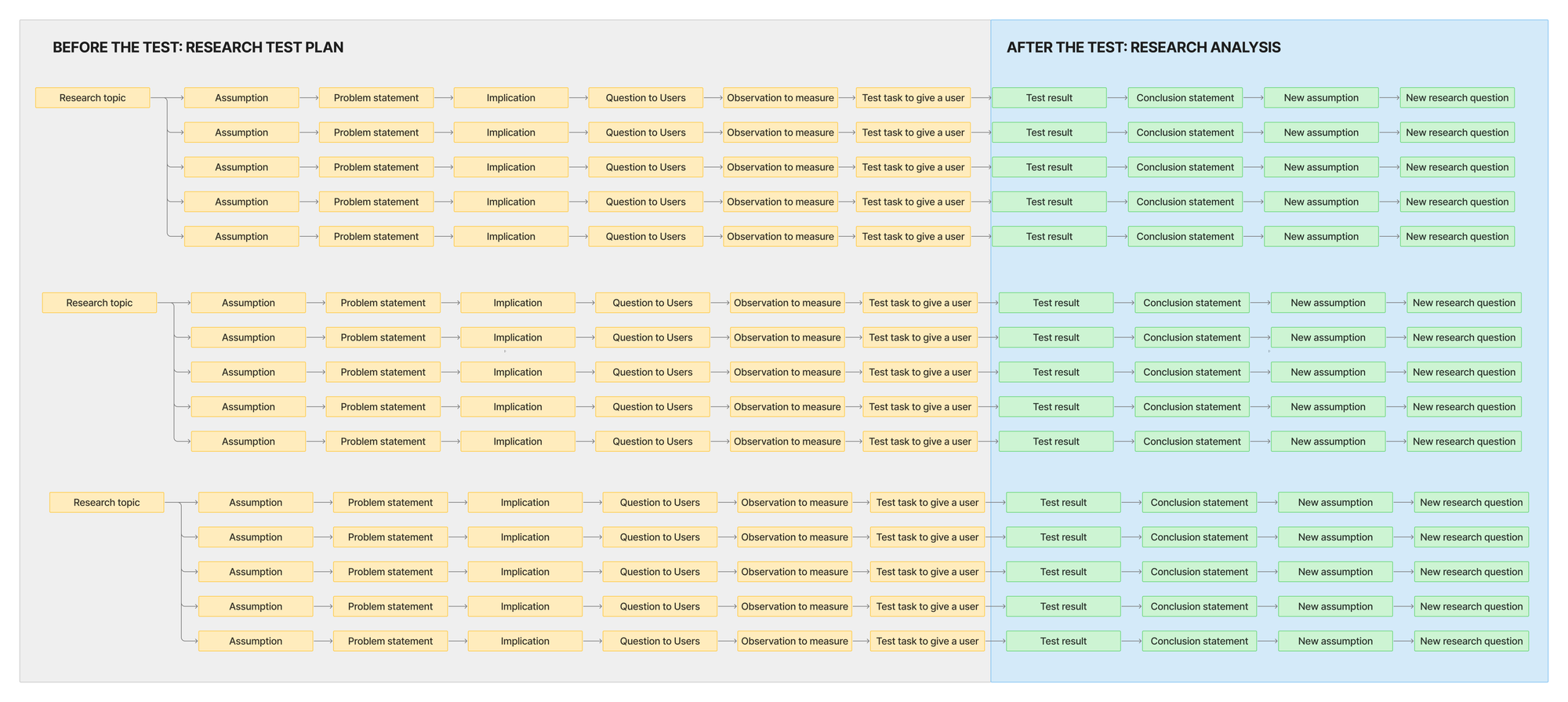 Use this template to create plans that track everything you ask people back to the underlying assumptions and topics you want to learn.