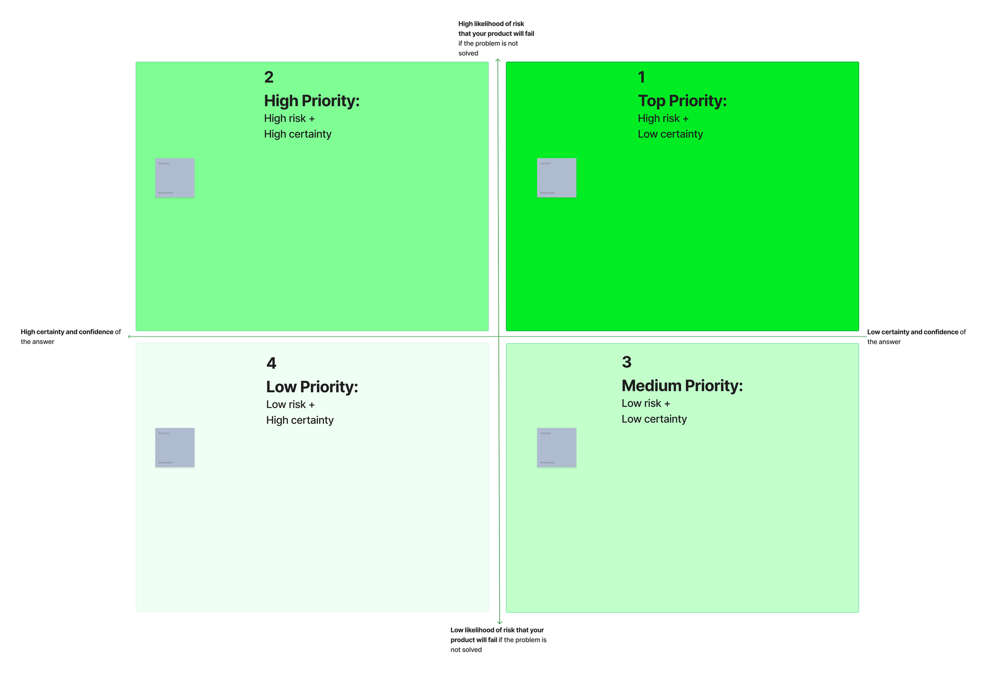 Together, you can rank the assumptions based on risk and certainty level. You can decide together which assumptions to prioritize first.