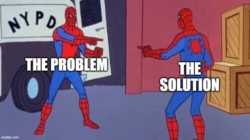Too many teams are stuck in this one-sided dynamic. They think either about the problem or the solution, but don’t create pathways to make change together. We're not participating together in problem-solving. We're not helping each other translate solutions to assumptions. We're not acting in unison. We’re not tracking change to prove the value of it together. We’re only arguing one side or the other. Neither side is speaking the same language yet.